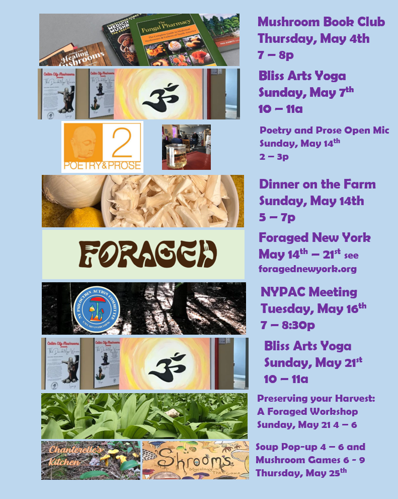 May is going to be a full Month. In addition to all our activities on the farm We will also be teaching a mushroom growing workshop in conjunction with the Brooklyn Psychedelic Society