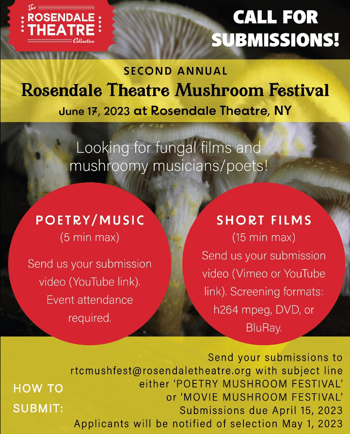June 17: Rosendale Theater Fungi Film Festival: a day long celebration of fungi on film with walks, talks, and poetry readings! It’s not yet listed on their website, but details will be distributed as we get them.