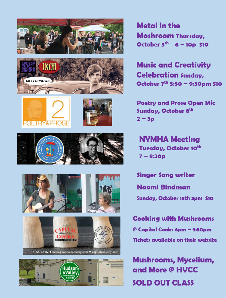 Saturday, November 4th: A Mushroom Experience with Collar City Mushrooms and Friends at the Saratoga Performing Arts Center Hall of the Pines . This event has completely sold out!