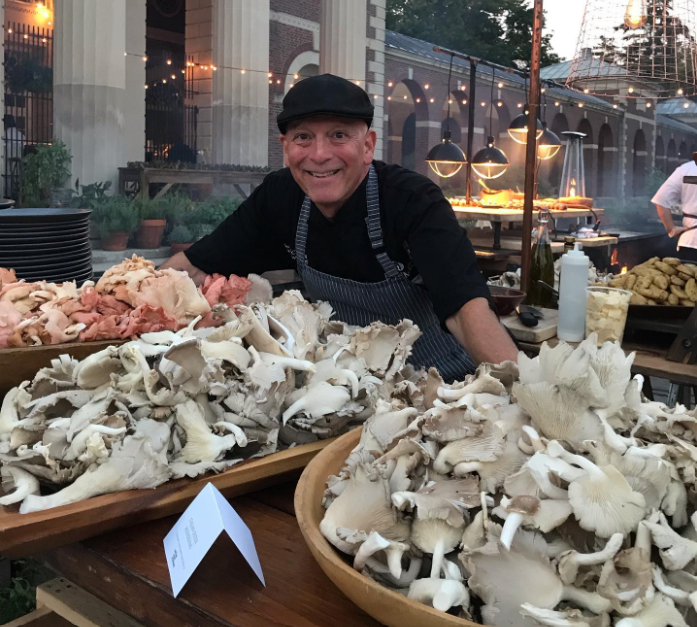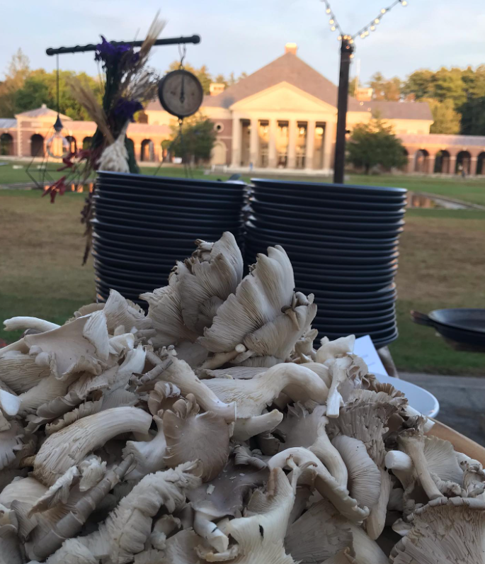 One of our largest customers, Mazzone Hospitality, hosted a gathering for 150 visiting executive chefs and served our mushrooms! Chef Dave Chaiken sauteed them on an incredible wood heated outdoor oven-top pan structure at the Hall of Springs in Saratoga.