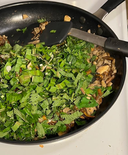 ½# of Thinly Chopped Mixed Greens (we used Stinging Nettles, Garlic Mustard, and Ramps)