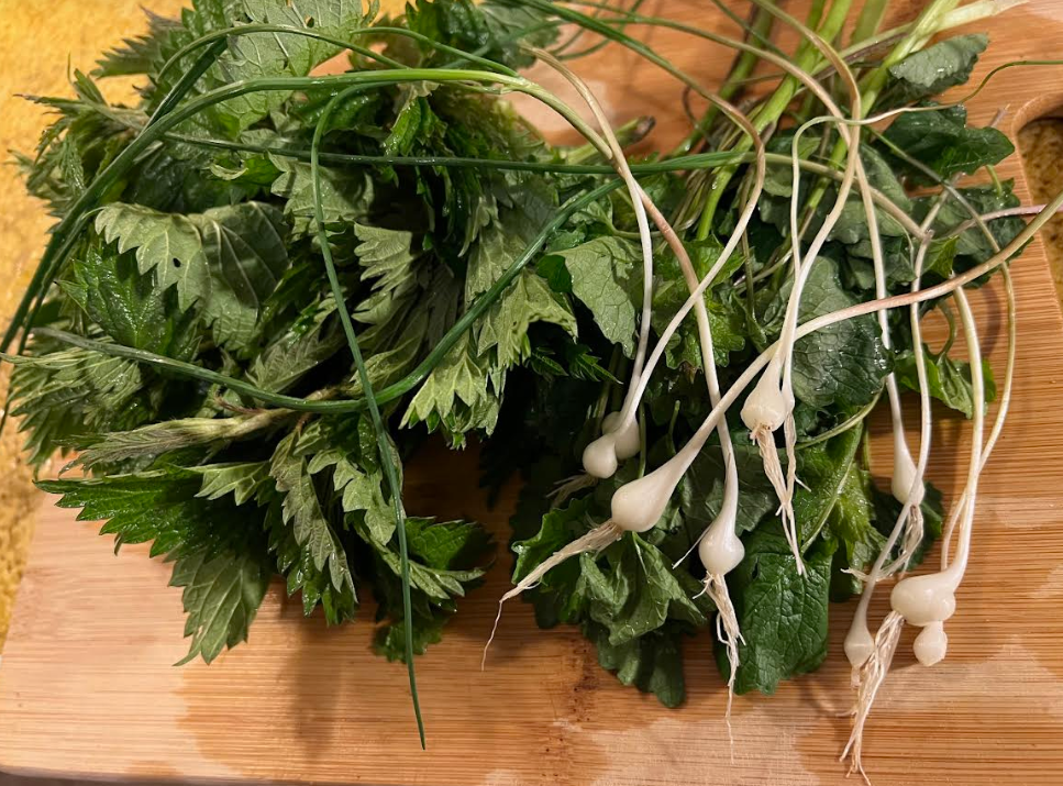 We did a lot of wild harvesting in April and our resident culinary creative, Amy, came up with a decadently delicious and easy soup: