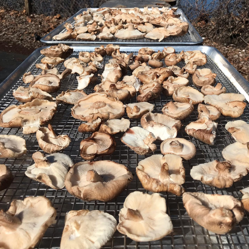 With the return of longer days we can resume production of sundried shiitake. When left out in the sun between 6 and 12 hours (over two days) they collect the vitamin D from the sun’s rays in their cell walls creating an all natural booster that is perfect for combating seasonal affective disorder during the long winter nights.