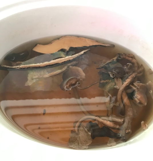 Approximately 8 cups of homemade Mushroom Broth