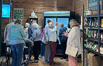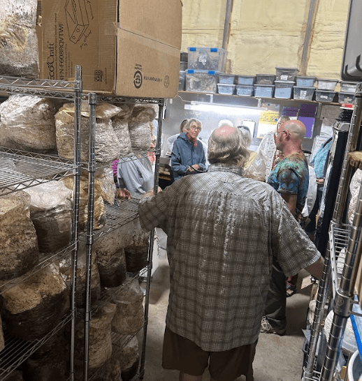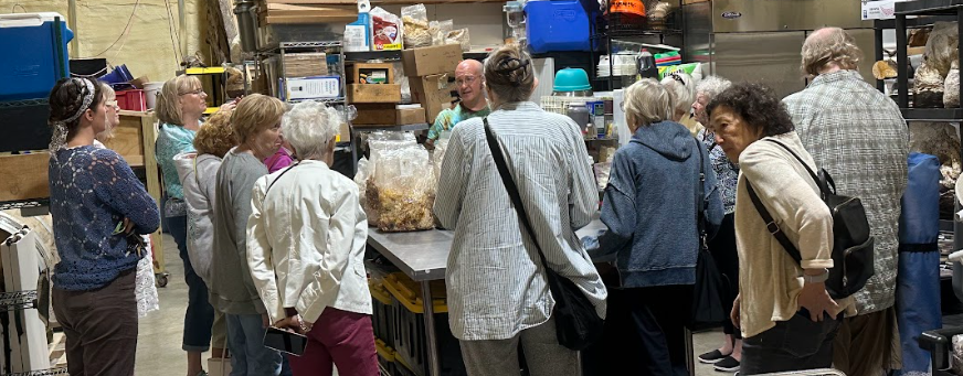 The Colonie Senior Center organized a field trip of curious budding mycologists to learn about various ways we grow fresh fungi. A visit to our farm always ends with a visit to the Corner Spore where you can get a variety of our fresh mushrooms and other products as well as the entire selection of Indian Ladder Farms products like fresh cider donuts and just pressed cider!