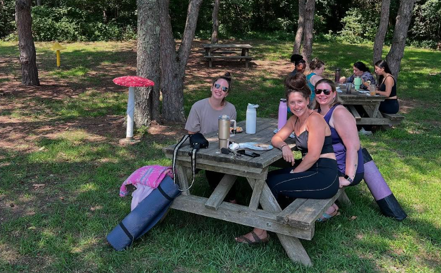 Yoga Instructor Alyssa Ladzinski lead a class in the Pines area of Indian Ladder Farms followed by a mushroom forward lunch curated by Defazios at ILF.