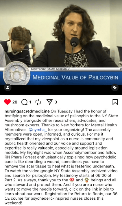 Assembly member Amy Paulin (D, 88th district: Westchester) Chair of the Assembly Committee on Health put together a hearing that gathered experts in psychiatry, nursing, psychology as well as people who have used psilocybin to help build a case for legal access to psilocybin-containing mushrooms.