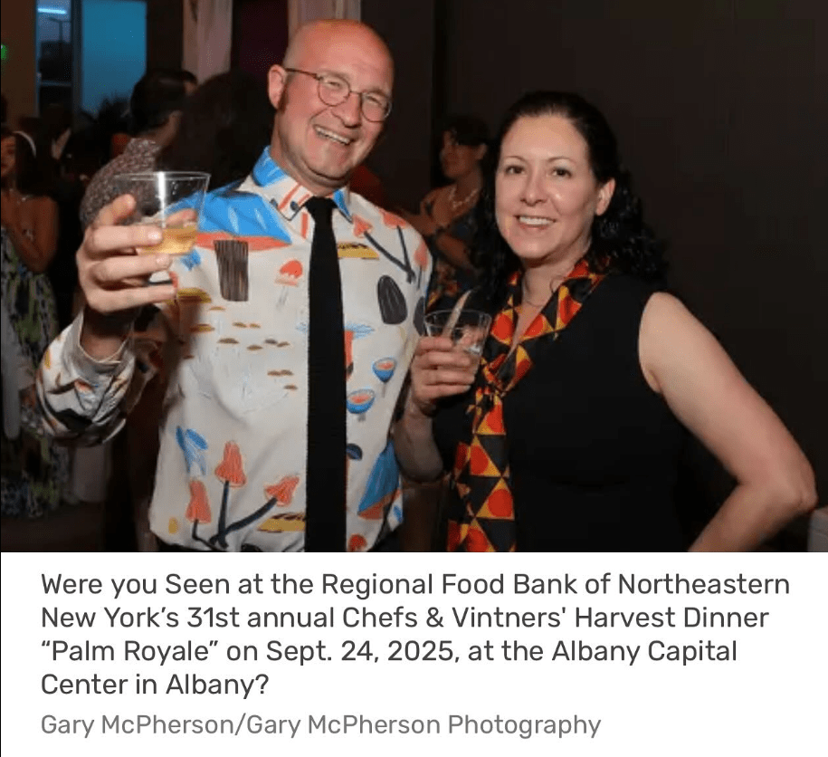 Avery and Amy attended the Regional Food Bank of Northeastern New York’s annual fundraiser and networked with dozens of regional chefs and culinary appreciators. We finally got Chef Ric Orlando to settle on a date for his Mushroom Experience Dinner. It’ll be in March of 2026! Stay tuned for details.
