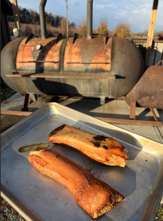 Avery snuck some King Trumpets in the smoker while the Indian Ladder staff had it fired up. They came out so rich and meaty! We certainly will be playing around with this some more next year!