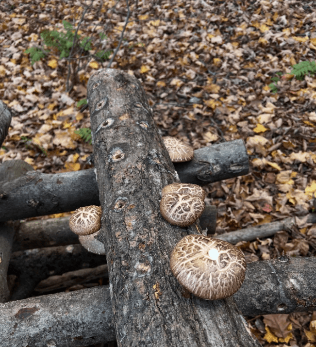 Some of our outdoor logs have fruited! The Nameko stalled a bit because of a few poorly timed frozen evenings, but before it got too frigid a few Shiitake popped! We’re looking forward to a fruitful spring!