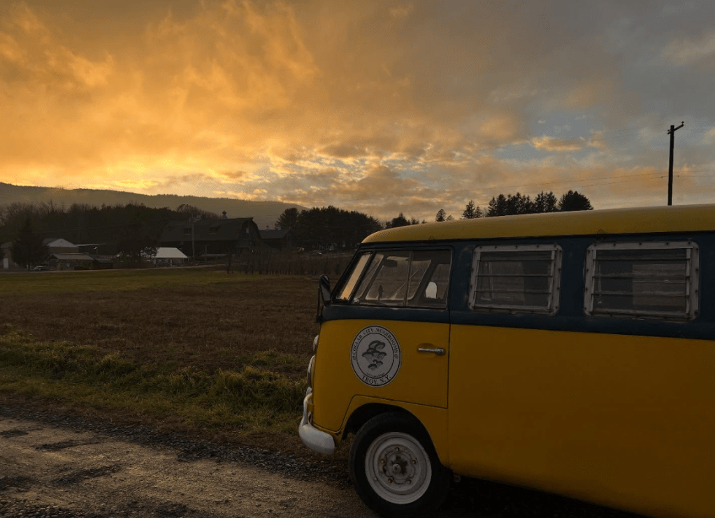 The Shroomwagen is enjoying the last few beautiful nights before getting tucked in for the winter. Our farm vehicle has proven not only a useful utility mover of things, but a real bringer of delight as we drive around campus.