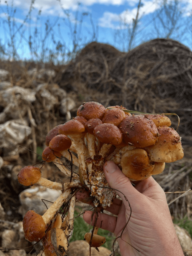 We found a few Wood Blewits right in our compost pile as well as our cultivated strains. We’ve identified these before, but we finally harvested and tried it! Delicious! When trying a new mushroom, always go small. You never know if you’ll have an adverse reaction to a wild mushroom. We always try a new fungi friend by cooking in butter with a dash of salt and pepper.