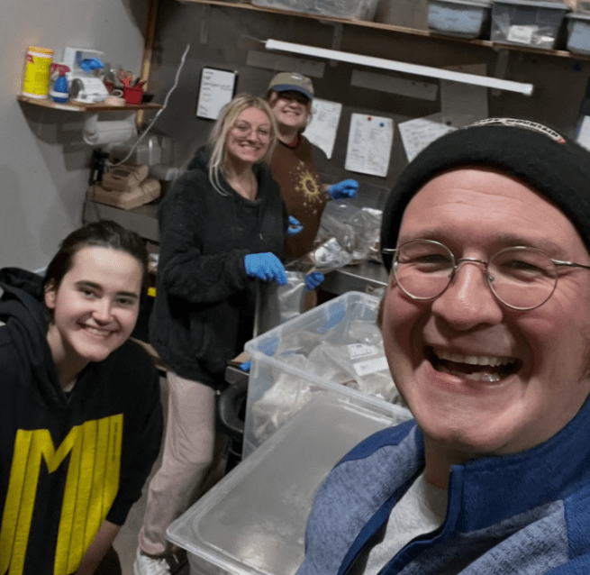Life Scout candidate, Tayo, volunteered with us in order to satisfy some required conservation hours. They learned about mycelium compost as a soil additive. Tayo harvested mushrooms and helped make substrate blocks as part of understanding the cycle of mycelium. Incorporating mushroom compost in your garden helps balance Ph, increase nitrogen, retain moisture, and attract insect allies that help aerate the soil. Mycelium compost improves vegetative growth remarkably! Contact us if you are interested in getting some for your garden or farm this year!