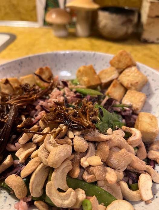 We just can’t get enough of enoki! This NY Times inspired crispy tofu salad was topped by roasted clusters of enoki to add another layer of texture and taste! So delicious!