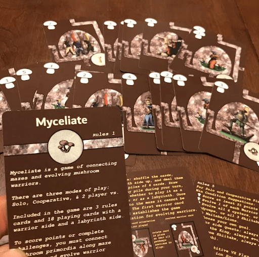 Our games, Myceliate and Find the Fungi have gotten updates! New copies should arrive in early June. Now includes mycelium tokens to cover the consumed primordia in Myceliate and the card backs for Find the Fungi have been edited with new information.