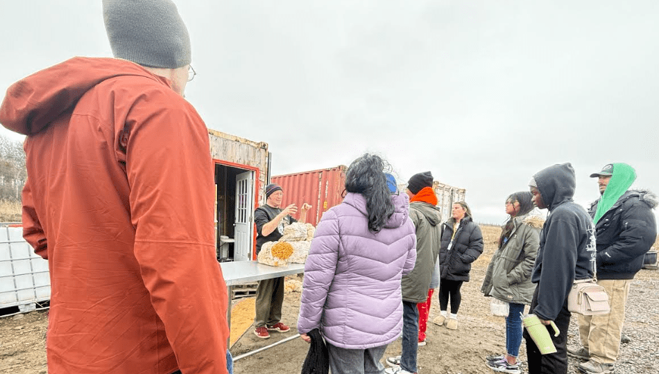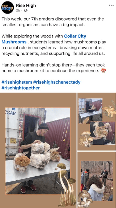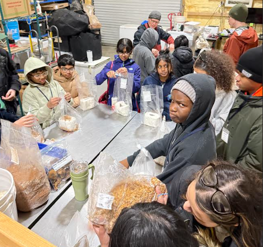 The Schenectady Rise HIgh Program connects interested learners to concrete hands on experiences in science technology engineering and math. Mushroom farming includes a bit of all three components (plus art!). The 7th graders visited our farm for the second year in a row and took home some blue oyster toilet paper roll grow kits.