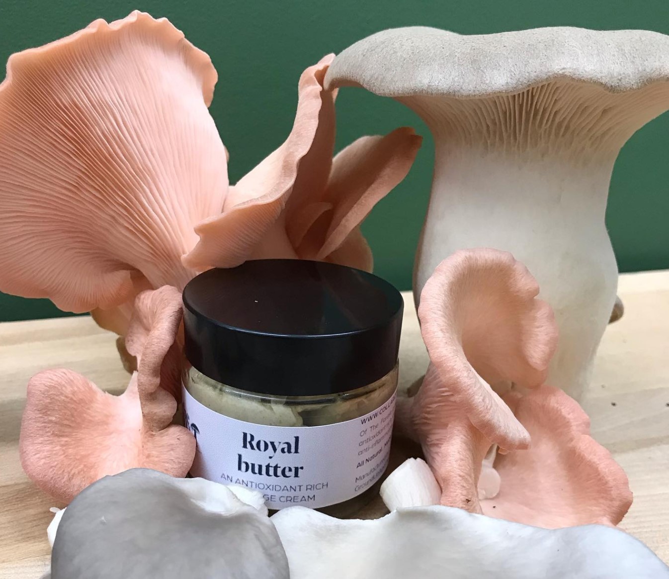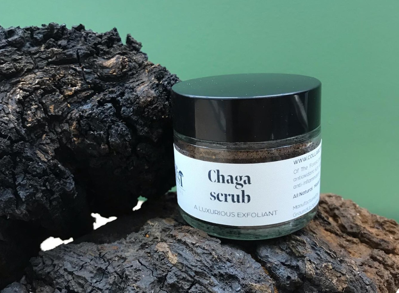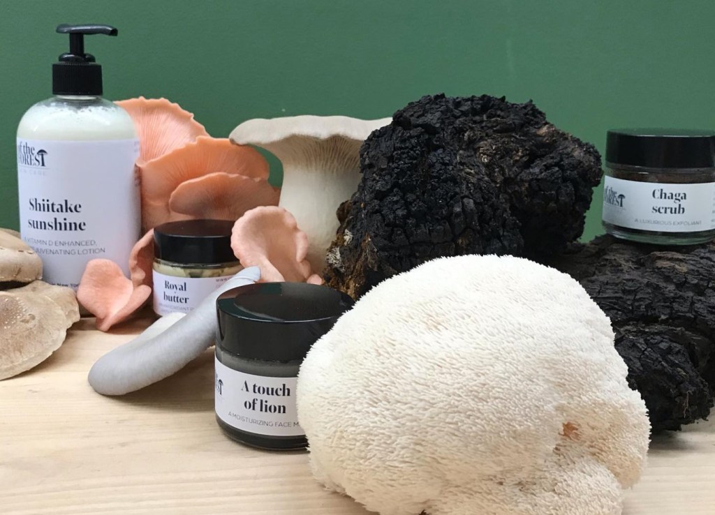 In addition to Collar City Mushrooms grown mushrooms and wild, sustainably foraged chaga, of the Forest skin care products by Ground Up Apothecary contain the following ingredients: